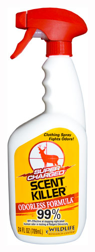 Wildlife Super Charged Scent Killer attacks a wide range of odors even human odor. The odorless formula fights odors at the molecular level. A heavy application works for days, it's 99% effective at stopping replicated human odor 10 days after drying. Works great on backpacks, knapsacks, dry bags, duffel bags and other all purpose sport bags.