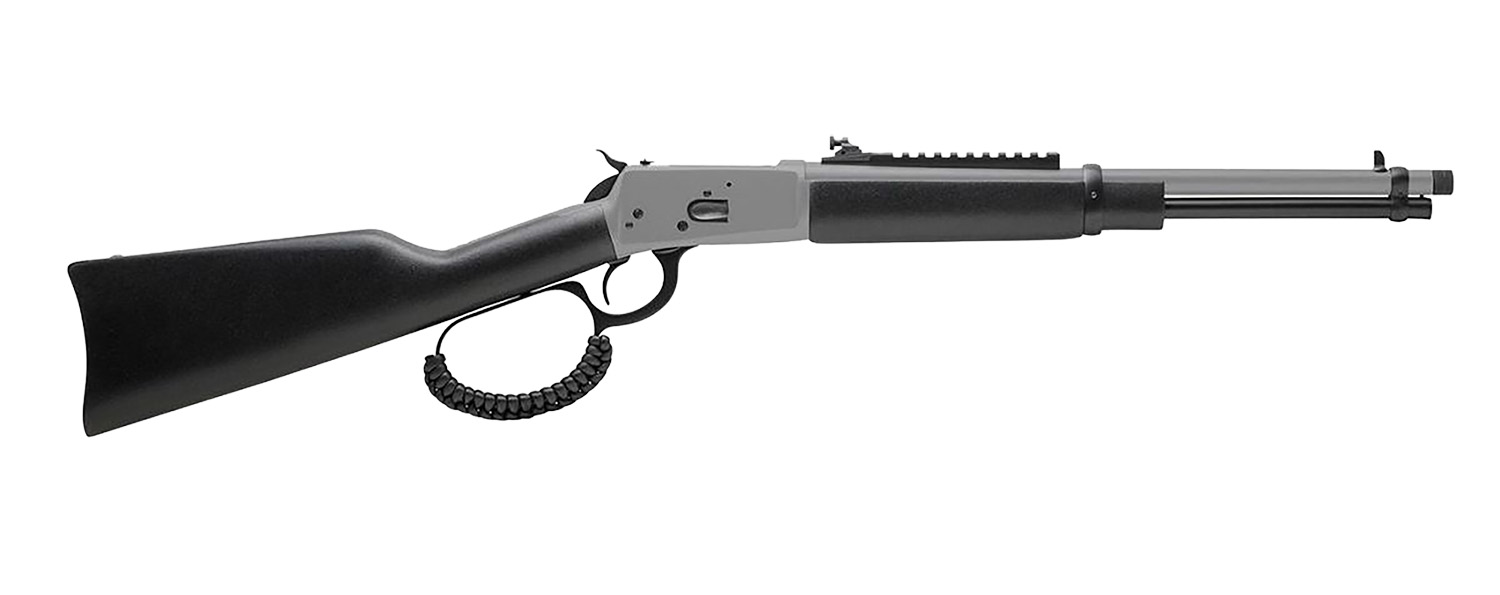 The Rossi R2 is an ideal truck or saddle rifle. The polymer furniture is intended to take the punishment of hard ranch use and blends seamlessly with the Cerakote finish. It comes with an angled Picatinny scope base to accommodate optics and includes an adjustable rear peep sight for those who favor open-sight shooting. The big-loop lever is sized for use with gloves and is wrapped with black leather for added comfort and style.